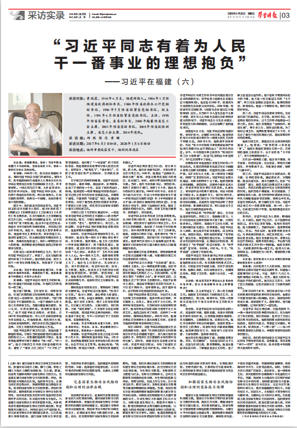 采訪組:習(xí)近平同志先后在廈門市、寧德地區(qū)和福州市任職,根據(jù)您的了解,他在福建各個(gè)時(shí)期的工作有什么特點(diǎn)?